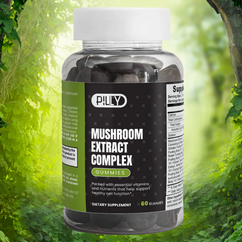 Pilly Labs Mushroom Gummies are a natural supplement designed to bring the benefits of functional mushrooms into a delightful gummy form. These gummies uniquely blend ancient herbal knowledge with contemporary dietary needs, making them an appealing option for those seeking to improve their health. Each gummy contains a concentrated 10:1 fruiting body extract of ten different mushroom species, chosen for their health-enhancing properties. This formulation ensures that users receive the most bioactive compounds available, making each gummy a powerhouse of nutrition.